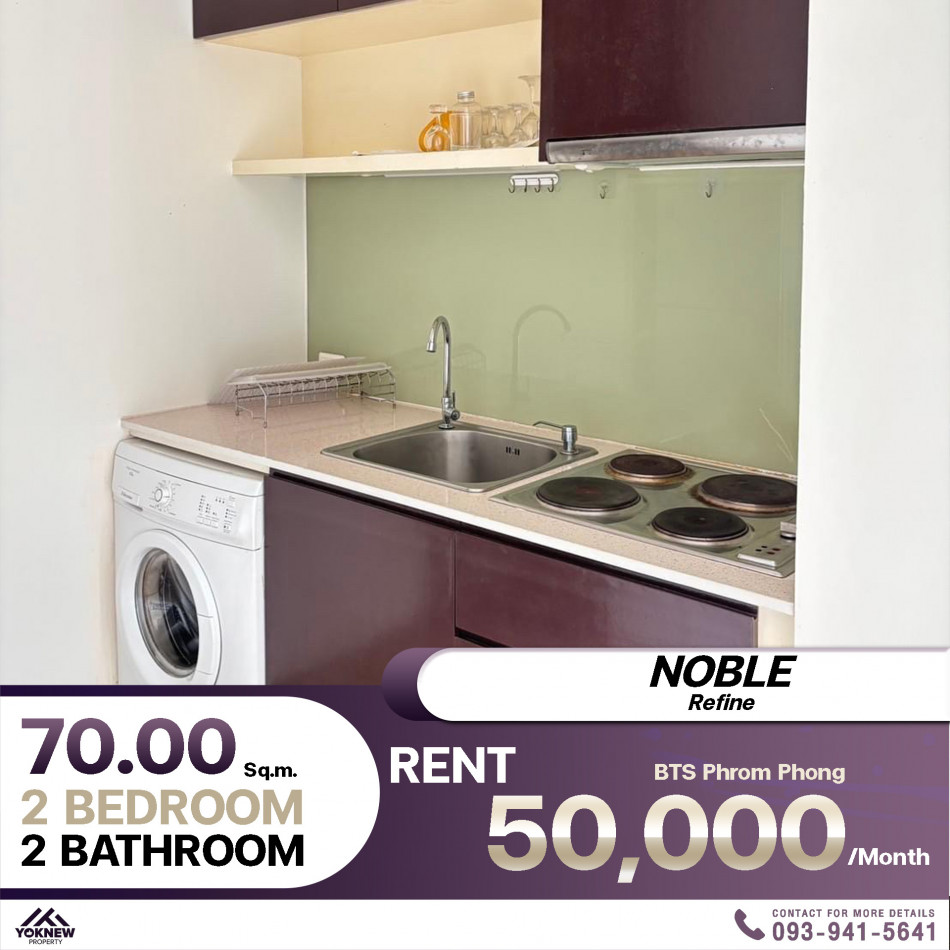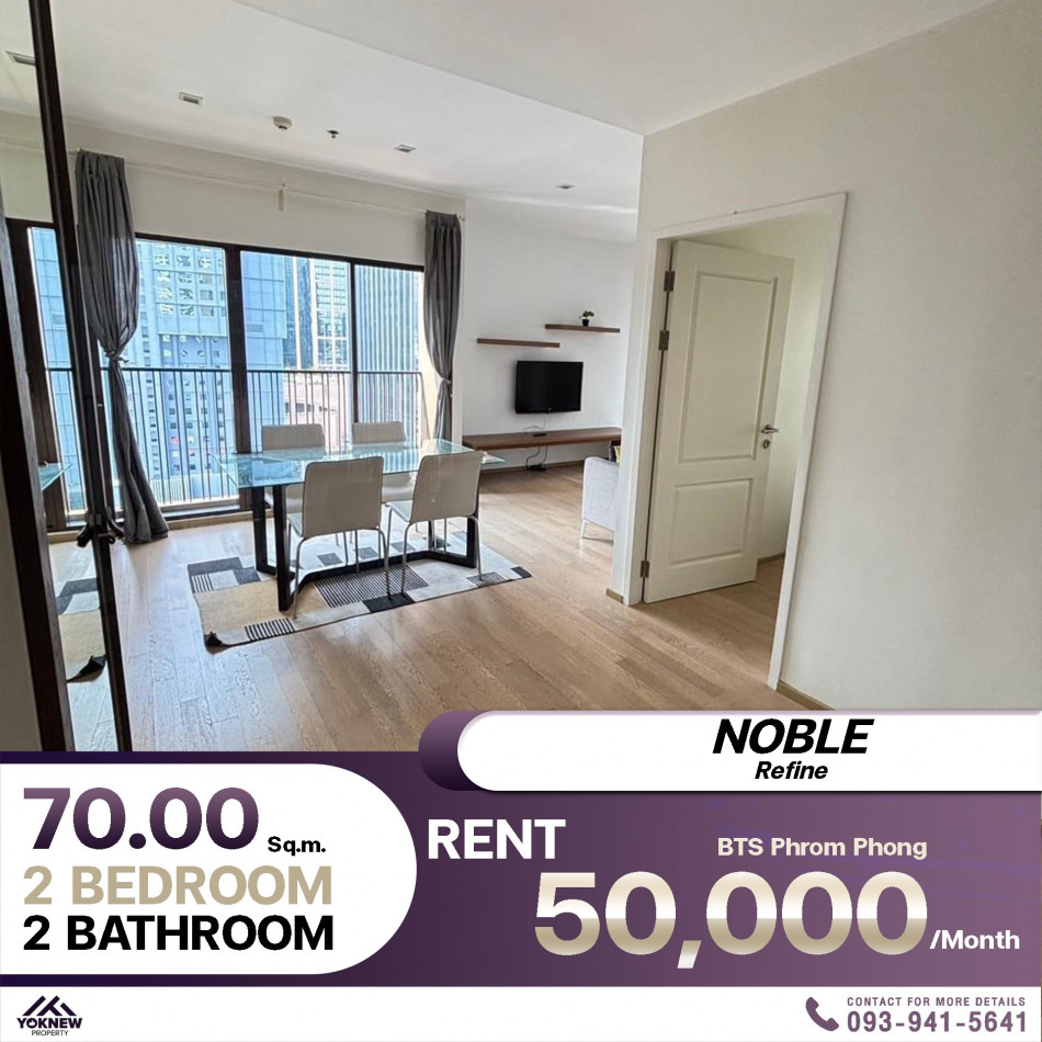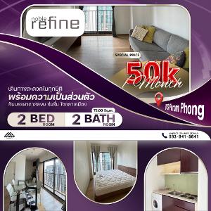 Code C20231201293....Noble Refine สำหรับเช่า, 2 ห้องนอน, 2 ห้องน้ำ, ชั้นสูง, แต่งครบ, พร้อมเข้าอยู่