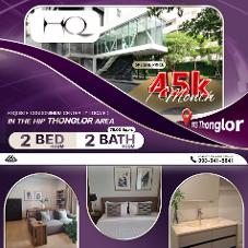 คอนโด HQ Thonglor 2 ห้องนอน 2 ห้องน้ำ เฟอร์นิเจอร์ครบ เช่าราคา 45,000 บาท