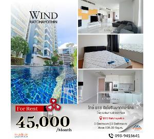 ว่างเช่าด่วน คอนโด Wind Ratchayothin ใกล้ BTS รัชโยธิน ห้องใหญ่ Penthouses 3 ห้องนอน 3 ห้องน้ำ