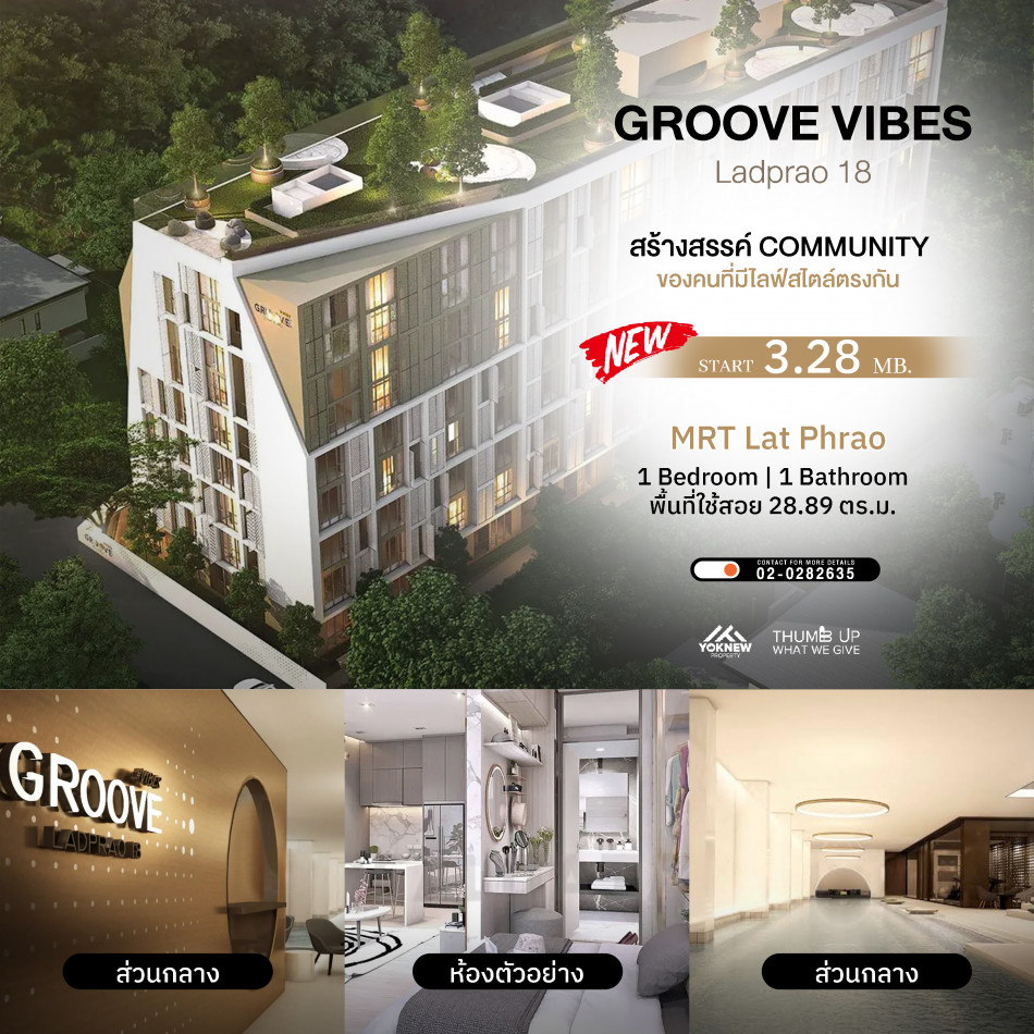 คอนโดใหม่ Groove Vibes Ladprao 18 ขายราคาโปรโมชั่น คอนโดใกล้ MRT ลาดพร้าว