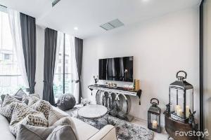 ว่างให้เช่าคอนโด Noble Ploenchit ห้องตกแต่งสวย ห้องนั่งเล่นที่โล่งโปร่งสบาย