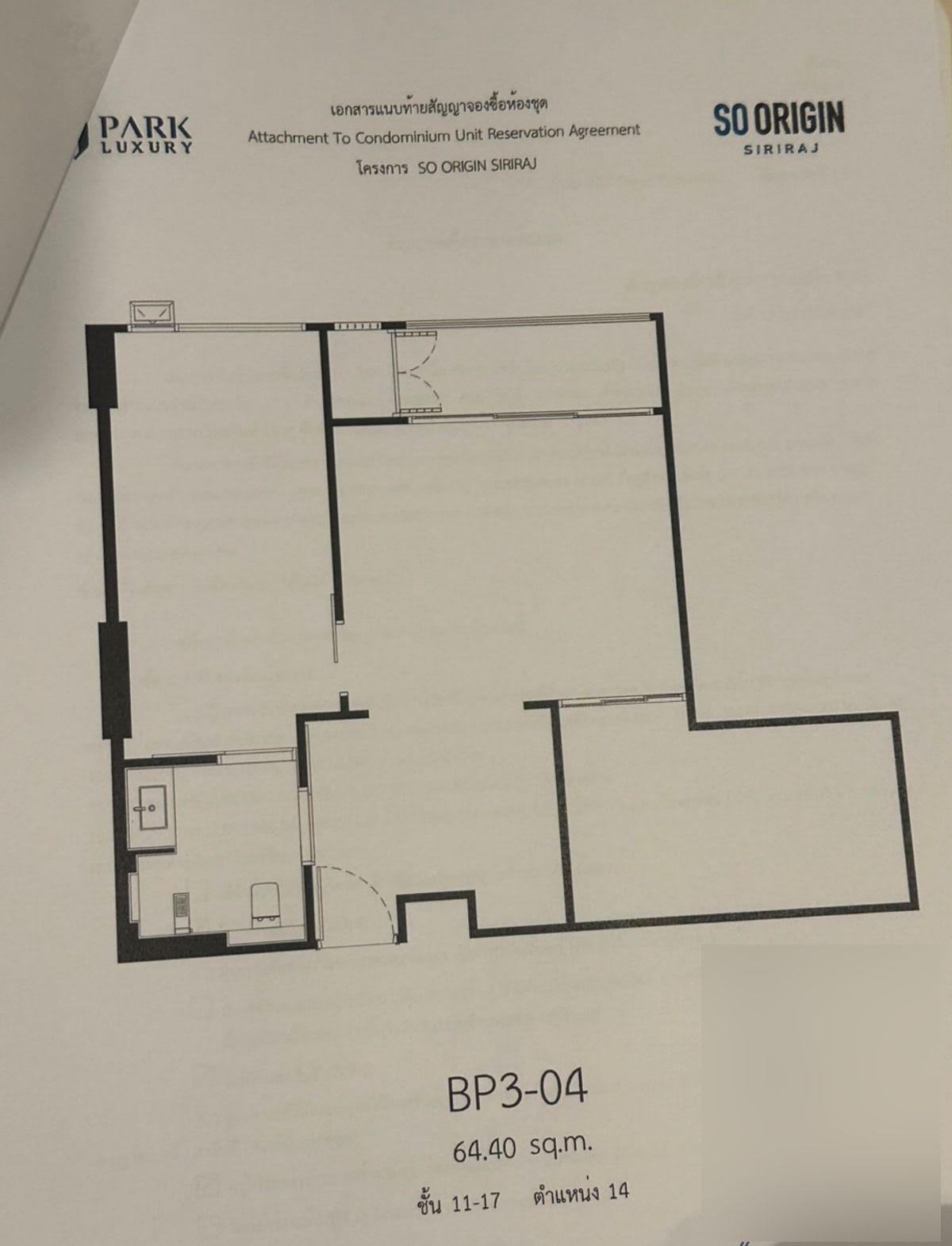 CM04334 ขายดาวน์ โซ ออริจิ้น เวลเนส ศิริราช So Origin Wellness Siriraj ถนนพรานนก แขวงบ้านช่างงหล่อ เขตบางกอกน้อย กทม. **ข้อมูลห้อง** ห้อง So Wellness Reserve เลขที่ 1514 ชั้น 15 พื้นที่ห้อง 64.40 ตรม. 2 ห้องนอน 1 ห้องน้ำ ใกล้ MRT ไฟฉาย **ราคาหน้าสัญญา 6,601,100 บาท (จะได้ส่วนลด 200,000 จากโครงการคืน หลังโอน) ปัจจุบันผ่อนดาวน์งวดละ 10,900 บาท/เดือน งวด 27 จาก 32 งวด **ราคาขายดาวน์ 390,000 บาท *รายการโปรโมชั่น* 1 Build in Microwave 1 รายการ 2 Digital door lock 1 รายการ 3 Home Automation 1 รายการ 4 ก๊อกอ่างล้างจาน 1 รายการ 5 เครื่องดูดควัน 1 รายการ 6 เครื่องปรับอากาศ 18000 BTU 1 รายการ 7 เครื่องปรับอากาศ 36000 BTU 1 รายการ 8 เครื่องปรับอากาศ 9000 BTU 1 รายการ 9 ฉากกั้นอาบน้ำ 1 รายการ 10 ชั้นวางทีวี1 รายการ 11 ชุดครัว 1 รายการ 12 ตู้กระจก 1 รายการ 13 ตู้ครอบตู้เย็น 1 รายการ 14 ตู้เสื้อผ้า 1 รายการ 15 เตาไฟฟ้า1 รายการ 16 เตียงนอน 6 ฟุต 1 รายการ 17 อ่างล้างจาน 1 รายการ 18 Origin Healthcare Club Member Normal Package 1 ปี 1 รายการ 19 ส่วนลด 200,000 บาท ณ วันโอนกรรมสิทธิ์ คอนโดเป็นส่วนตัว ยูนิตน้อย -ใจกลางศิริราช ใกล้รพ.ศิริราช, ศิริราช ปิยะมหาราชการุณย์ 1.7 กิโลเมตร - 70 เมตรถึงรถไฟฟ้า MRT สายน้ำเงิน สถานีไฟฉาย อนาคต สายสีส้ม -ฟู้ดแลนด์ จรัญฯ, เซ็นทรัลปิ่นเกล้า เดินทางเข้าพรานนก พุทธมณฑล อนาคตเชื่อมพุทธมณฑลสาย 3,4 -ใกล้ รพ เอกชน หลายที่ อาทิ วิชัยเวชไฟฉาย ปิยะเวท พรานนก ธนบุรี 1 รพ.รักษ์ข้อ มีรถรับ-ส่ง รพ. ศิริราช คอนโดสร้างเสร็จ Q3 ปี 2569 (65% done) *สนใจติดต่อได้ที่ 086-802-5609 คุณป๊อบ line 0868025609* *บริการรับฝากขาย เช่า บ้าน ที่ดิน คอนโด และอสังหาริมทรัพย์ทุกประเภท ฟรีค่าคอมมิชชั่น กรณีเจ้าของขายเอง