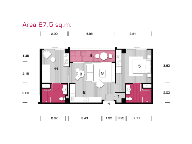 | ขนาดห้อง | 68.0 ตารางเมตร |