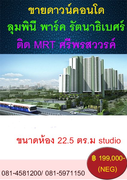 ขายดาว LPN PARK รัตนาธิเบศน์ ตึก B ขนาด 22.5 ราคาพิเศษ