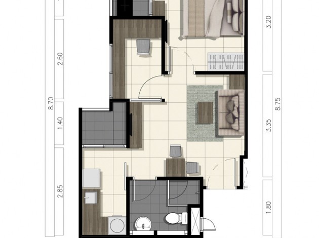 ห้อง 332 ห้องมุม วิวสระว่ายน้ำ มีการแบ่งห้องเป็นสัดส่วน คือ 1ห้องนอน
