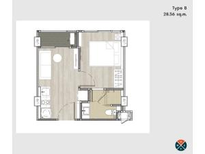 ราคาเต็ม 1, 539,050 บาท 1 Bedroom ตึก B ห้อง 415 ชั้น 4 พื้นที่ 28.56 ตรม แต่งครบ